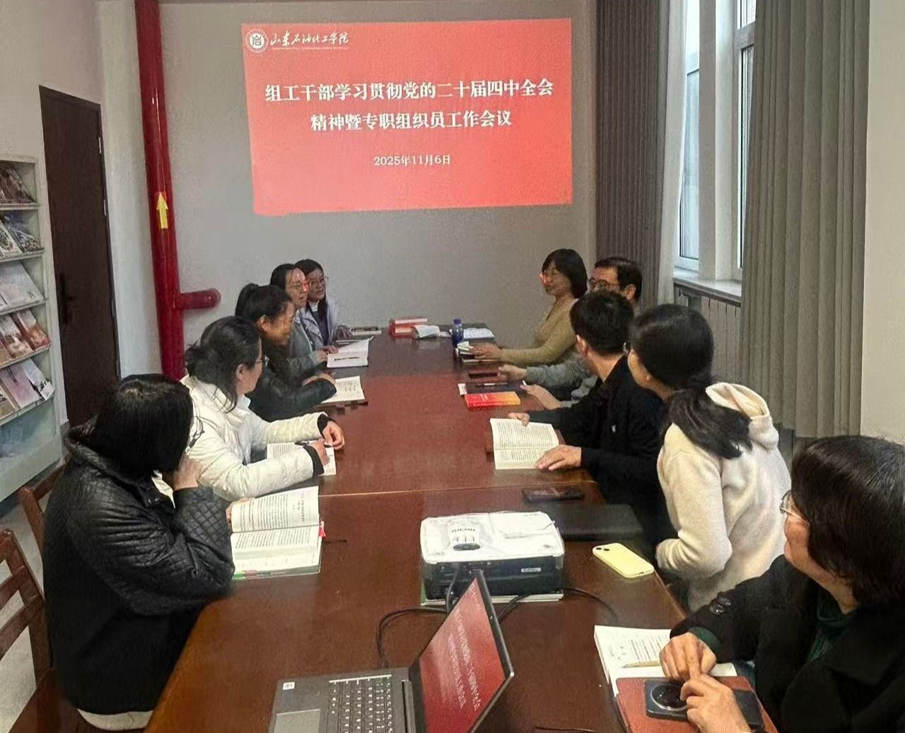 11月6日,组织部召开学习贯彻党的二十届四中全会精神暨专职组织员工作会议。组织部分管日常工作的副部长孟贵宾主持会议并讲话,组织部工作人员和二级学院专职组织员参加会议。