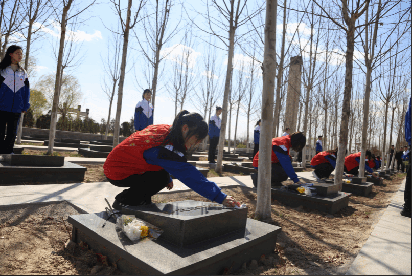 在革命烈士纪念碑旁,师生党员面向党旗,重温入党誓词。铿锵有力的誓言响彻陵园,彰显着新时代党员的责任与担当。学生党员陈天雨表示:“站在烈士墓前宣誓,让我更加深刻地感受到党员的使命,今后定要以实际行动践行誓言。”