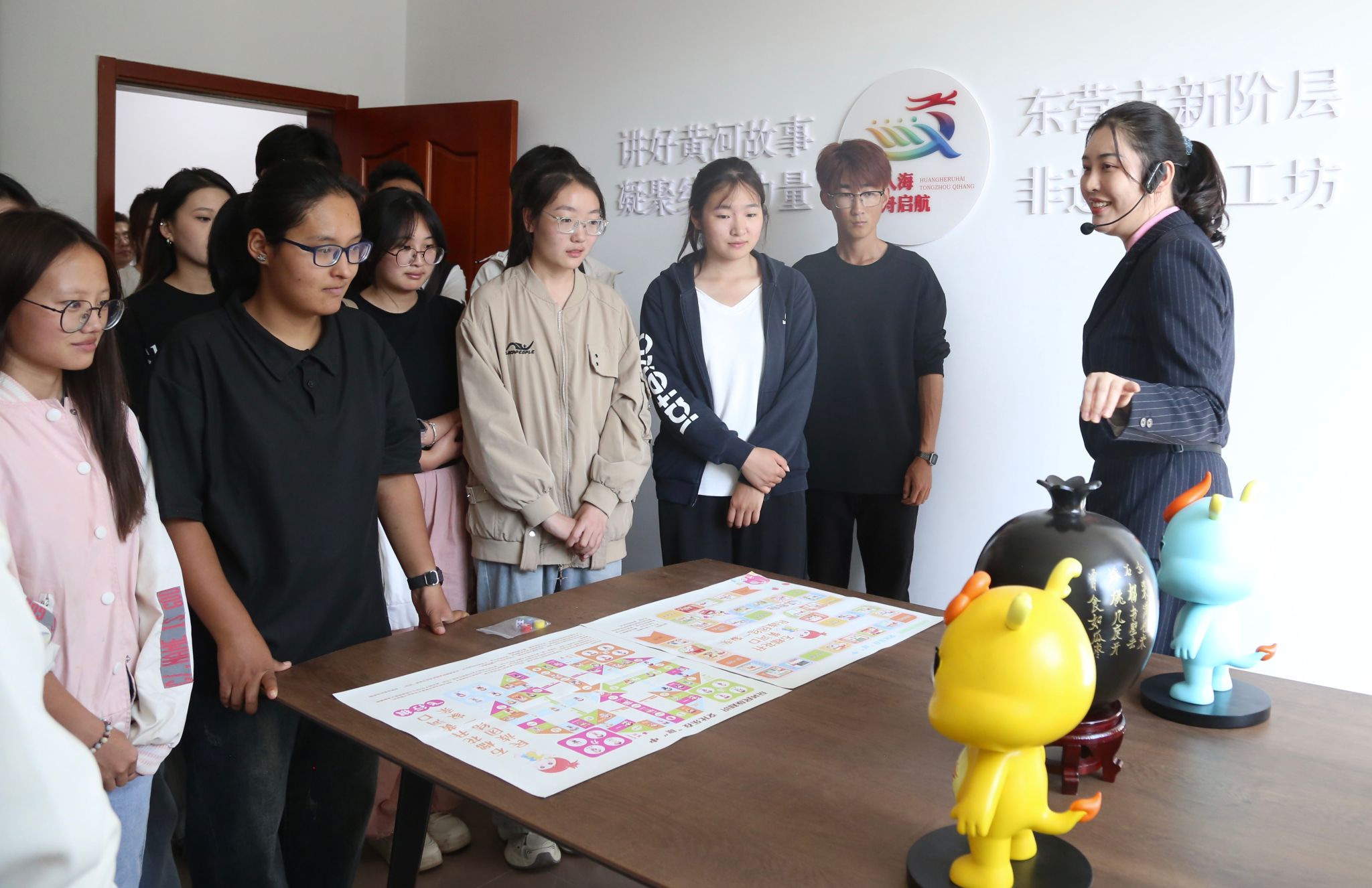 随后同学们参观了各个功能室,文创产品室,引起了同学的广大兴趣。其中卡通形象“石榴仔”就是在“各民族像石榴籽一样紧紧抱在一起”的理念下诞生的。还有广受欢迎的“河东东”“海营营”,将黄河与中华民族的精神图腾龙相结合,促黄河入海,同舟启航。